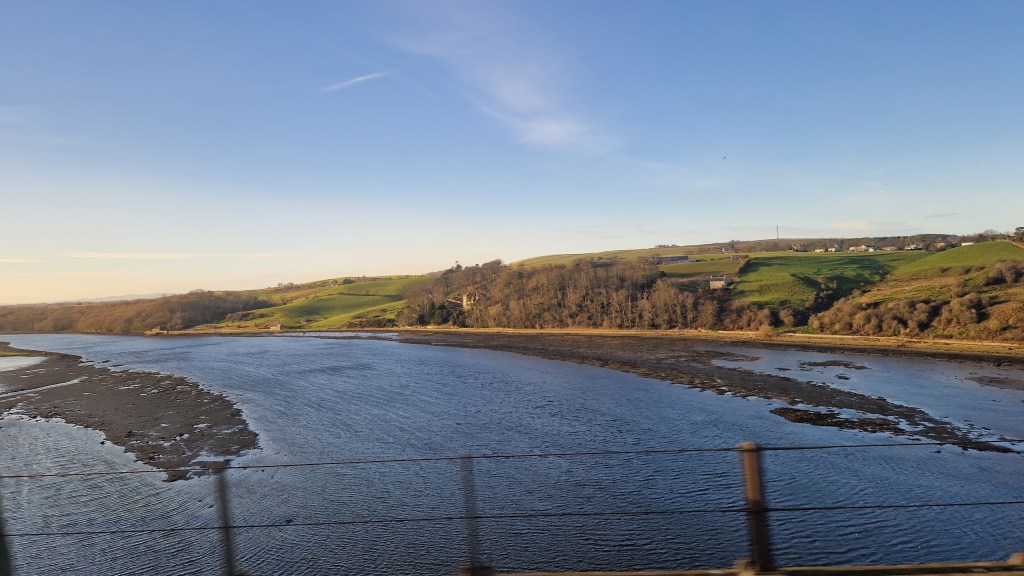Given the promise of hot food being available after Newcastle, we opted to wait for our onboard meal, however I did make sure to grab a flapjack as a snack to tide me over until then. Just under an hour into our journey we slowed down for the first stop at Alnmouth, and we soon after treated to the view out over the Aln estuary towards Alnmouth itself.
