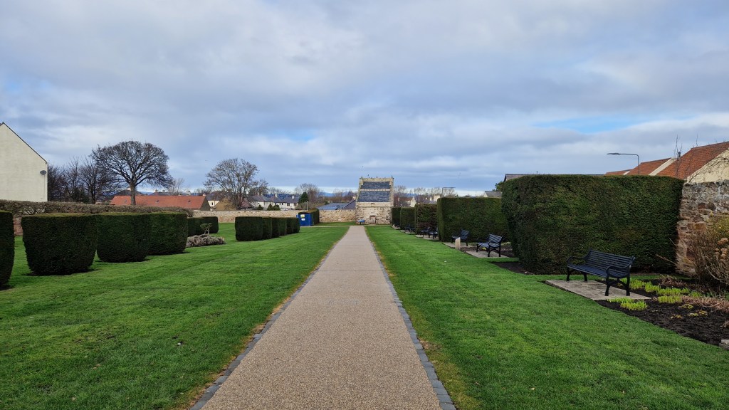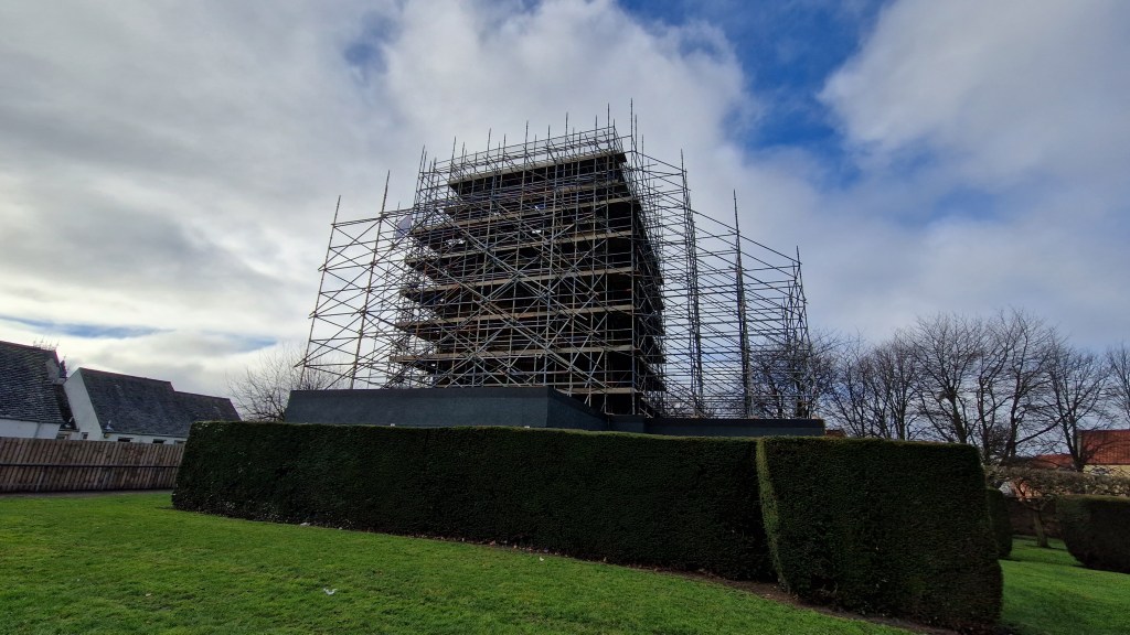 Possibly the most prominent site in Prestonpans is the Preston Tower, a ruined four-storey keep situated not far from the town’s station. Some of the structure dates back to the 14th century, although large alterations, including two additional stories, were made in the 1600s. Having suffered two fires during its history, the latest in 1663 leading to its ruin and abandonment, the tower is now owned by the National Trust for Scotland and looked after by East Lothian Council. During my visit the tower was covered in scaffolding as its undergoing restoration with the intention of allowing the public inside.