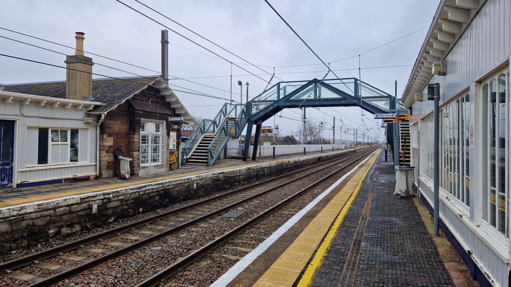 I started this Exploring the East Coast by making the 15-minute journey from Edinburgh to Prestonpans, the busiest of the three stations for the day. With the station about a 10-minute walk from the seafront, in 2021/22 Prestonpans served 0.129 million passengers, and the stations sees just under 40 services most days.