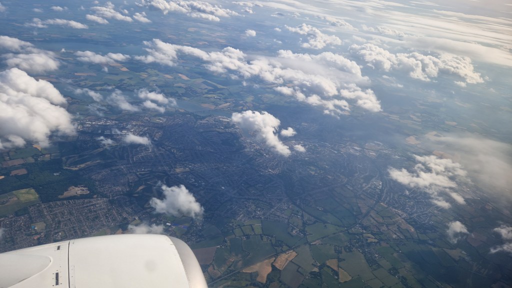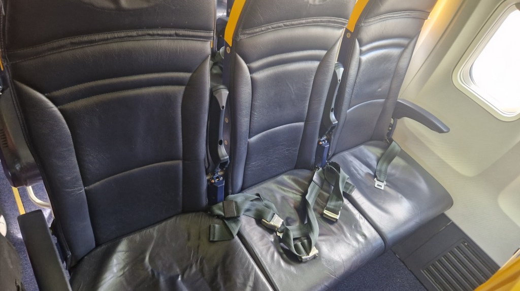 Boarding started around 1605, around 20 minutes before departure and was rather chaotic as people learnt that ‘random seat allocation’ means ‘random seat allocation’ and you won’t all get seats together without paying Ryanair some extra money. The positive of all this chopping and changing was that I, sat in my usual seat 12A, ended up with an empty seat next to me!