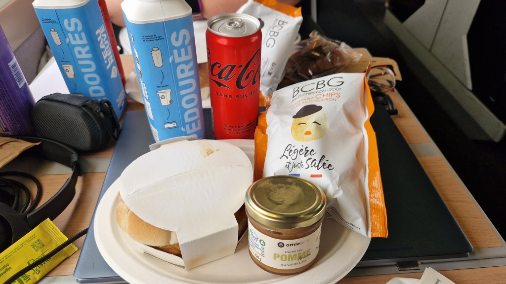 If you decide to grab some food onboard, I’d recommend ordering at your seat as whilst you still have to head to the café bar, you are able to jump the queue and collect within a 15-minute window. There’s also a range of meal deals including ‘Le menu Thierry Marx’ which, for €15.90, you’re able to get a main, dessert and a drink. We opted for this and discovered that with the burger you also get a packet of crisps and so altogether, two meal deals and two extra bottles of water came to €37.20. Even better was you get a discount with the SNCF Advantage card (their version a railcard but not age restricted) which saved us €5.43.