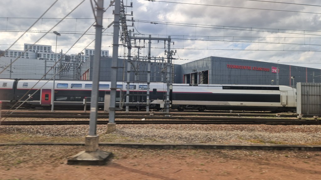 As we departed on time at 1347, our carriage was about a third full, although these would fill up as we stopped enroute. The journey back to Paris was scheduled to be 3 hours and 10 minutes, with five intermediate stops at Surgères, Niort, Saint Maixent L’Ecole, Poitiers and Saint-Pierre-Des-Corps. The latter is Tours’ second station and is well placed to handle through traffic as services don’t have to reverse (unlike at the main station).