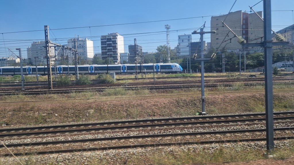 Departing one-minute early at 1312, we initially ran along the ‘classic lines’ out of Gare du Nord, past the Stade de France and duo of SNCF railway deports before reaching Villiers-le-Bel-Gonesse-Arounville where a flying junction took us onto LGV Nord. Originally opened in 1993, LGV Nord connects Paris with the Belgian border and Channel Tunnel and sees a wide range of high-speed trains operated by SNCF and Eurostar (both the original and ex-Thayls parts).
