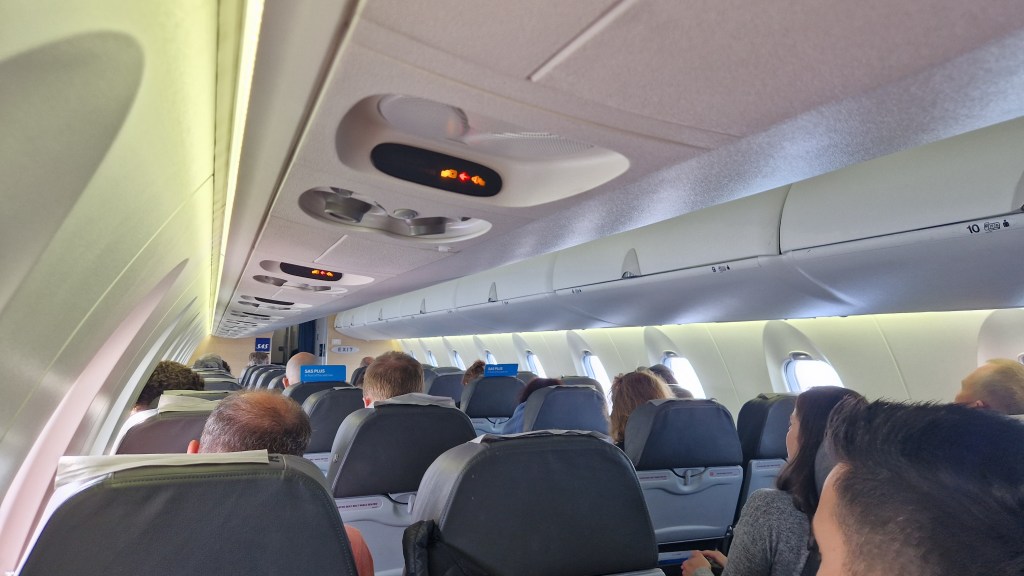 What surprised me on this flight was as soon as the flight attendants got the all clear from the flight deck, they began an onboard service of tea or coffee. Making the mistake of having a coffee, I had to use the air vent to cool it down a bit so I could drink it quickly as the 10 minutes to landing announcement was made just eight minutes after take-off. Given on some ‘full service’ airlines you don’t get anything for free these days, the fact SAS served tea and coffee on a really short flight was definitely a plus for them.