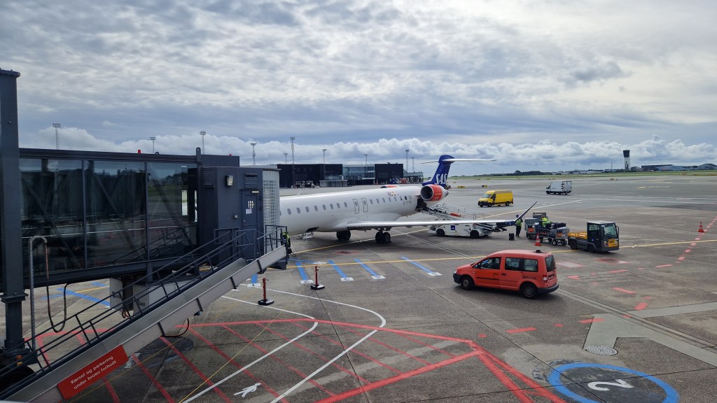 I settled down in the upstairs seating area which was much quieter than downstairs (although the airport was fairly quiet) and watched the earlier Copenhagen flight depart. I had tried to get on this earlier flight as it was only 45-mintues earlier but would have given me a more robust connection at Copenhagen, however I couldn’t seem to select it as an option on the SAS website so I assume it was fully booked. I’d have also preferred the journey on an ATR compare to the CRJ that I was booked on.