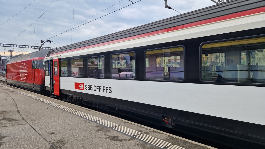 On thing the Swiss do well is railway catering (you can read about my previous experience of it here) and each half of this ‘InterCity’ service had a restaurant car providing a range of options including proper meals. Unfortunately, with the length of my journey there wasn’t time to have another sample of the menu, but Swiss railway catering is definitely a step up from that of the British rail network.