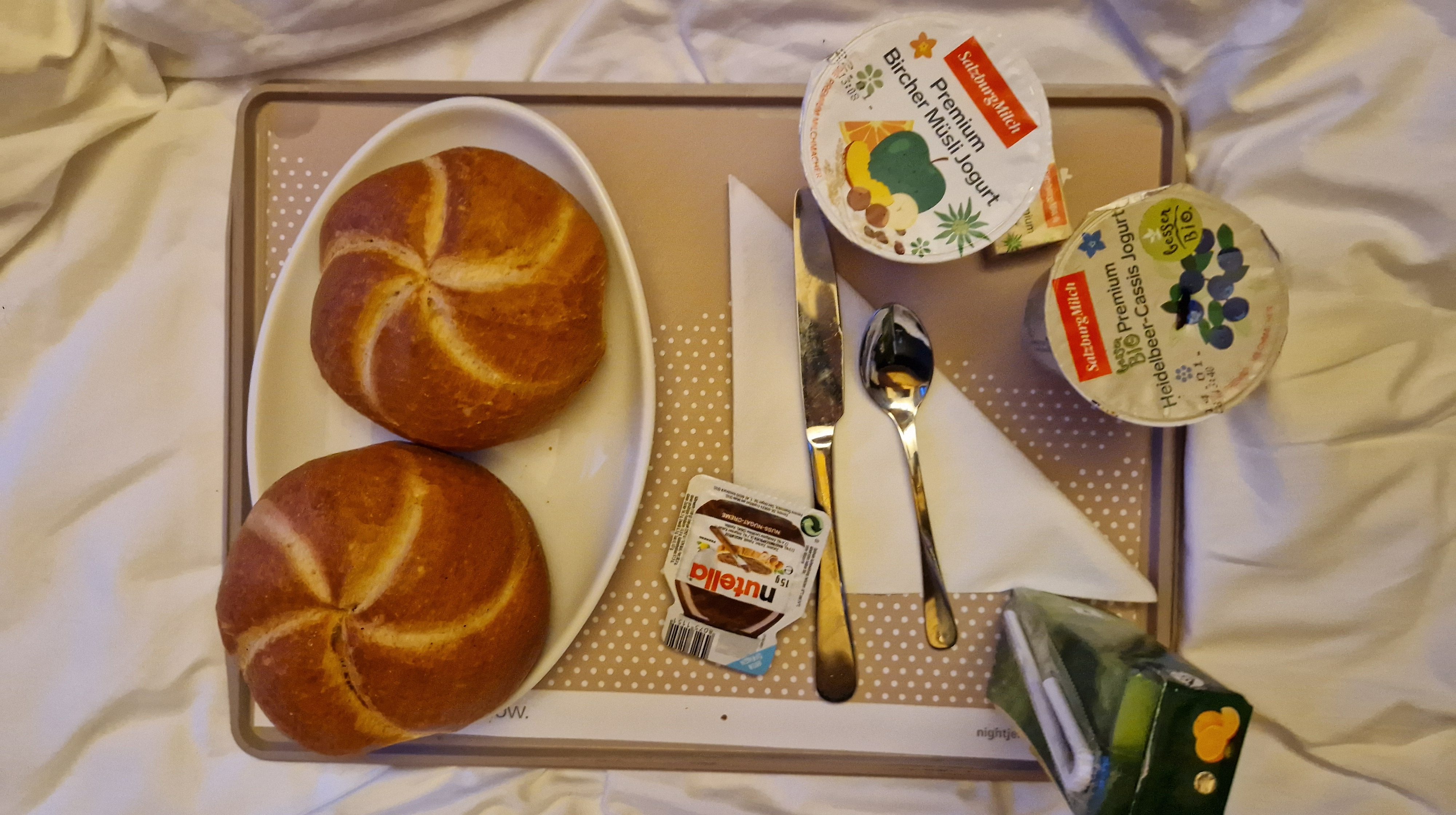 Around an hour before our arrival in Zurich breakfast was delivered and with the attendant having forgotten my orange juice, I left my room for the first time to go and fetch it. Unfortunately, I’d misunderstood the instructions the previous evening in regards to the room locking and managed to get myself locked out. Thankfully with the attendants help this was quickly resolved and I was able to enjoy my breakfast as the Swiss countryside passed by. Unfortunately when I had ordered breakfast the night before, the hot drink options were crossed out meaning a distinct lack of coffee to enjoy with the scenery.