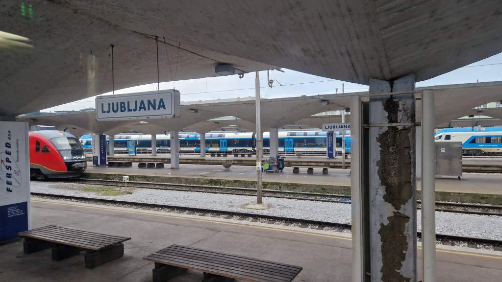 As we approached the Slovenian capital, we were held briefly at Ljubljana Vižmarje station before passing the city’s railway museum. I had been lucky enough to visit this when we had previously visited Ljubljana (read about that trip here and here) and as the train shed and sidings passed by the window, I was able to see some former carriages of the Compagnie Internationale des Wagons-Lits, the historical operator of European sleeper trains and the Orient Express.