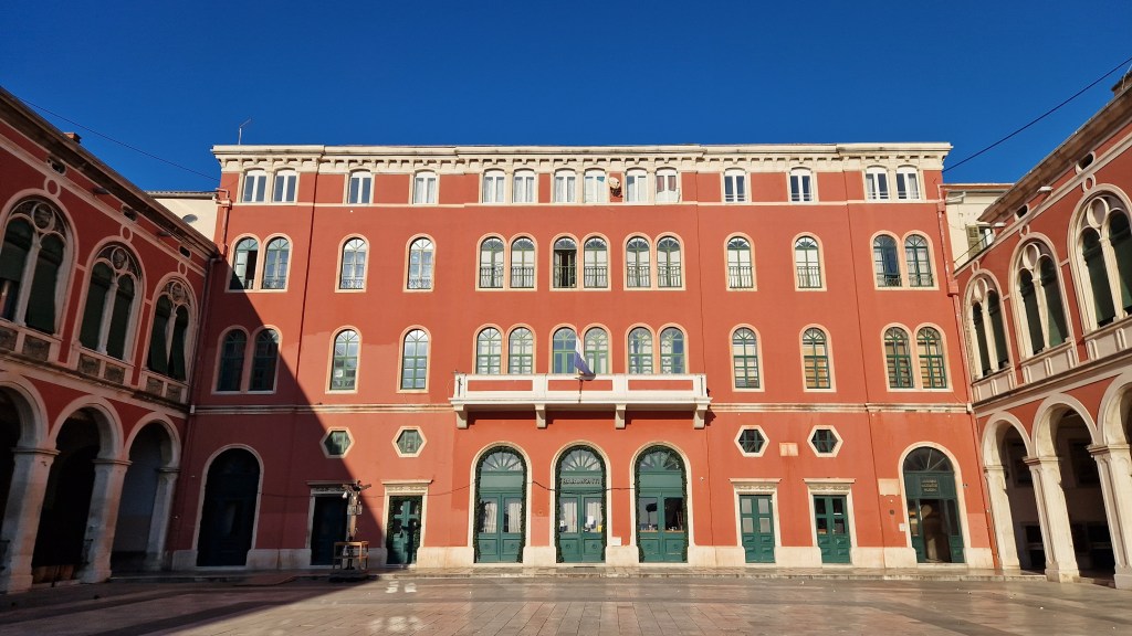 After that delicious and very filling lunch, I was ready for a short break back at my hotel before heading back out for some more exploration. The first stop of the afternoon was Trg Republic (Republic Square), one of the largest public squares in Split and designed to mimic St Mark’s square in Venice, having been constructed in the Venetian style. Trg Republic is a popular location for festivals and concerts and during my visit was home to an ice rink for the festive season.
