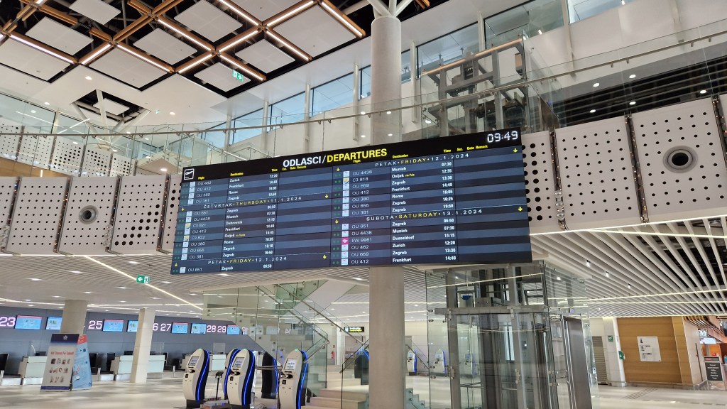 Whilst exploring Split the previous day (read about that here) I had tried to find the local bus station ahead of time, ready to catch the bus to the airport, however after some research I found this was a 10–15-minute walk from the centre of the city. The buses were also similar to those in Aarhus, where they are timed based on the scheduled flights, however in Split they are timed to arrive 80 minutes before departure, leaving less time than recommended by Croatia Airlines’ website. As such I decided to scrap the bus and took the short walk back towards the train station from where I could get a Bolt taxi.