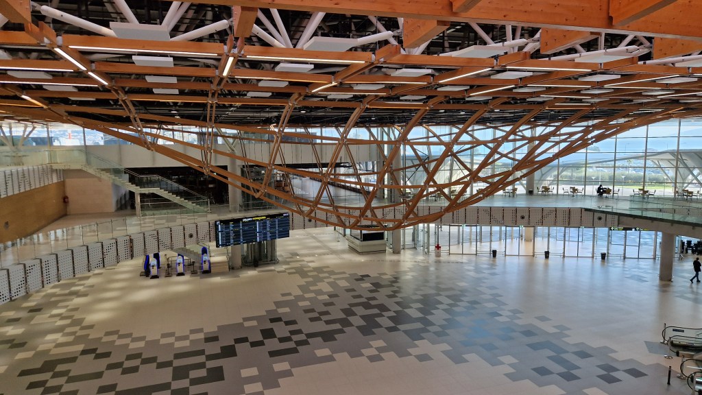 After a 30 or so minute drive from the harbourfront, the taxi dropped me off outside the airport’s new terminal that opened back in 2019. This new terminal more than tripled the airport’s floor space and allows it to handle more than 5 million passengers per year, the bulk of whom visit during the peak summer months. As such, on a random Wednesday in January, the airport was deserted and, having arrived before check-in opened, I headed up to the 2nd floor to grab a coffee and a muffin whilst I waited.