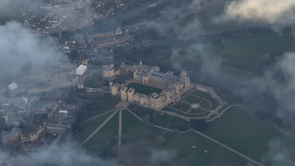 As we taxied out to Heathrow’s runway 27R, we passed a line of United Airlines Boeing 767s and 777s at Terminal 2B, the satellite building of the main terminal. There wasn’t too much of a queue to take off and we followed British Airways’ G-EUUO which was operating BA996 to Cologne. I was also able to see British Airways’ headquarters as we departed, before we entered the relatively low bank of cloud which obscured most of the rest of the departure. One exception was Windsor Castle which I was just able to glimpse through a gap in the cloud as we continued to climb.