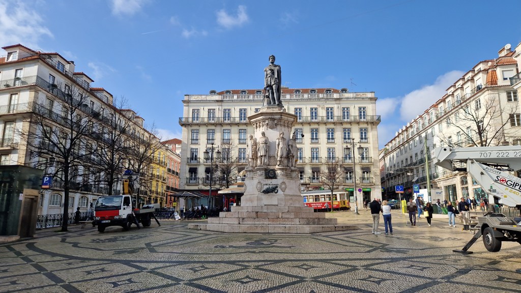 Day 2 dawned with some more good weather and made our way to Praça dos Restauradores, one of the city’s main squares adjacent to Rossio railway station. First up was breakfast and so we called in at Fábrica da Nata, one of the top rated places for Pastéls de Nata in the city which is situated directly on the edge of the square. A coffee, breakfast croissant and a couple of Pastéls de Nata are a great way to start the day and once again, even first thing in the morning, the weather was nice enough for us to sit outside in February and enjoy our breakfast.