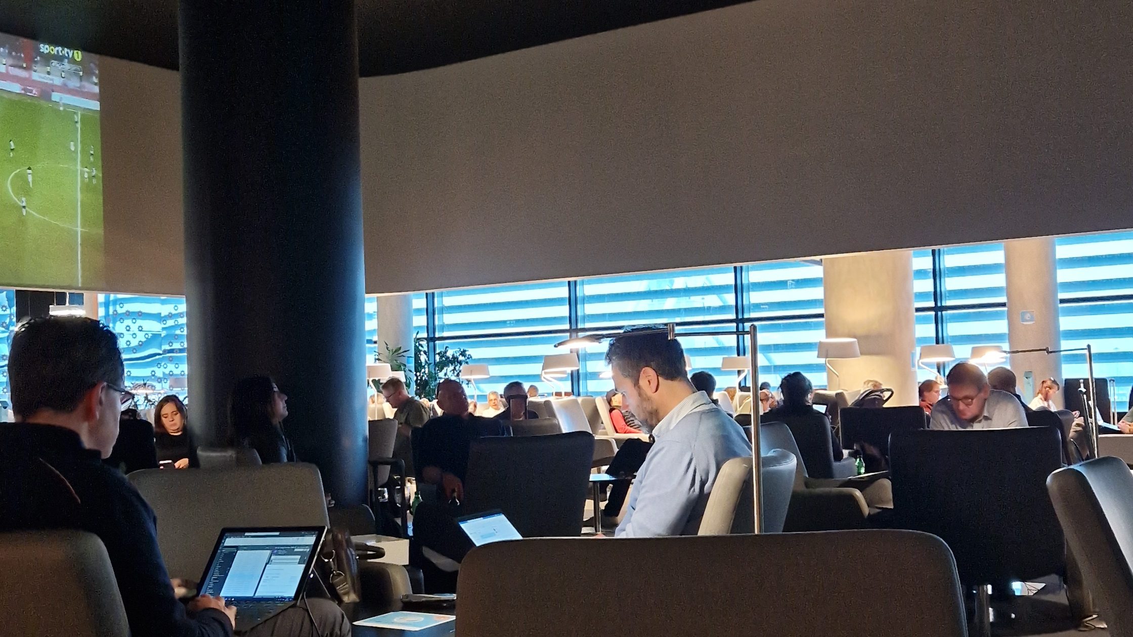 Deciding to try and find somewhere a bit more relaxing and peaceful than the main departure lounge, we headed upstairs to the ANA lounge (ANA as in the Portuguese Airport’s authority, not the Asian airline) which I was able to get access to via my bank. The lounge was very spacious and despite being busy didn’t seem crowded, and a darkened area with projected TV channels was our area of choosing to wait out the time before departure.
