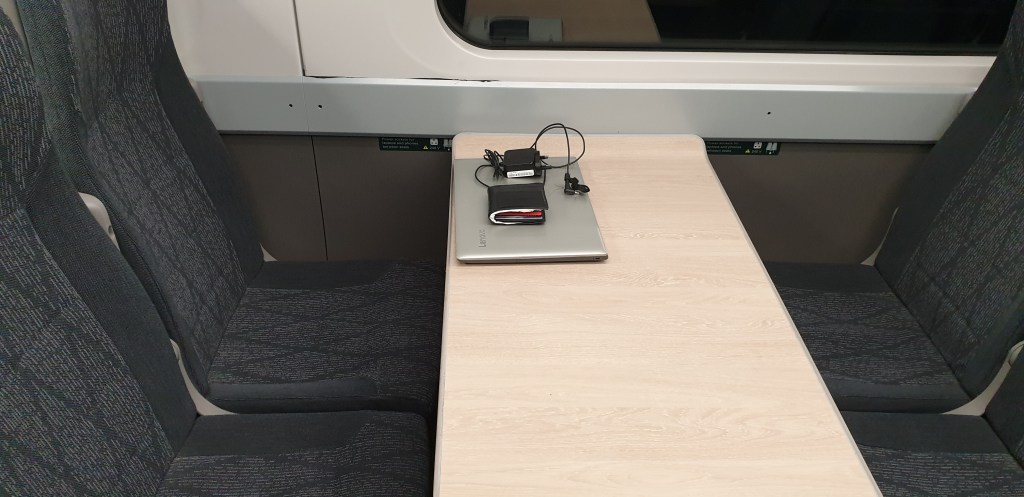 Seat K32 was my spot for the journey to Bristol, a forward facing window seat in a pair either side of a table. A common complaint regarding the IET fleet (along with their LNER cousins) is that the seats are uncomfortable and whilst they still aren’t great, the 1st class seating is slightly more comfortable than in standard class. There is also more space in 1st, with the seating in a 2-1 layout either side of the aisle and more legroom than in standard class.
