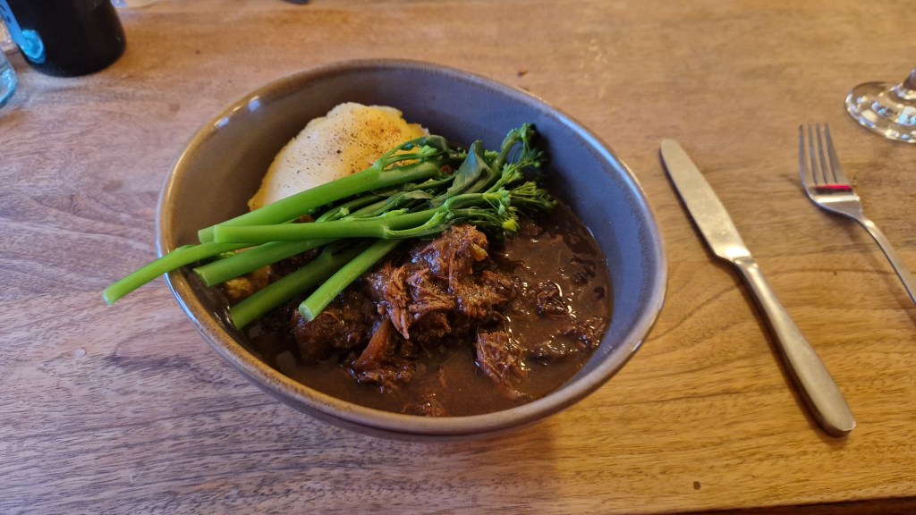 Despite us staying in the Station House until after dinner, our afternoon was still pretty eventful. Unfortunately, two separate groups of walkers had an individual that got injured and the Station House staff were great in using their Land Rover to go and rescue them, and the drama was rounded up with a spilt bottle of red wine at dinner. For our final dinner at Corrour, we both went for their signature dish, the Venison Stew, this time accompanied with some cheese and mustard mash. With the storm still making its presence known, we had a blustery run back across to the Signal Box and fell asleep listening to the wind and rain striking the moor.