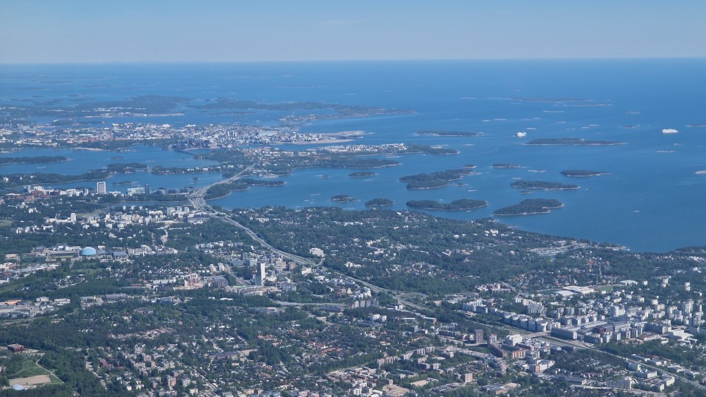 Having traversed the North Sea, we passed over Denmark mid-way between the cities of Aalborg and Aarhus, cruising at an altitude of 12500m (or 41,000 feet in old money), before then crossing the Kattegat and the Swedish coast between Gothenburg and Halmstad. The Swedish peninsula was quickly crossed, and we were soon flying over Sweden’s eastern coast south of Nyköping and across the Baltic Sea towards the Gulf of Finland. As we crossed the Baltic, I decided to get some more writing done for the last hour or so of the flight, with Business Class passengers also getting an hour’s complementary WiFi access. Unfortunately I couldn’t seem to get this to actually work and so my draft blog had quite a few ‘TBC’ areas that I’d need to research when I was back on the ground.