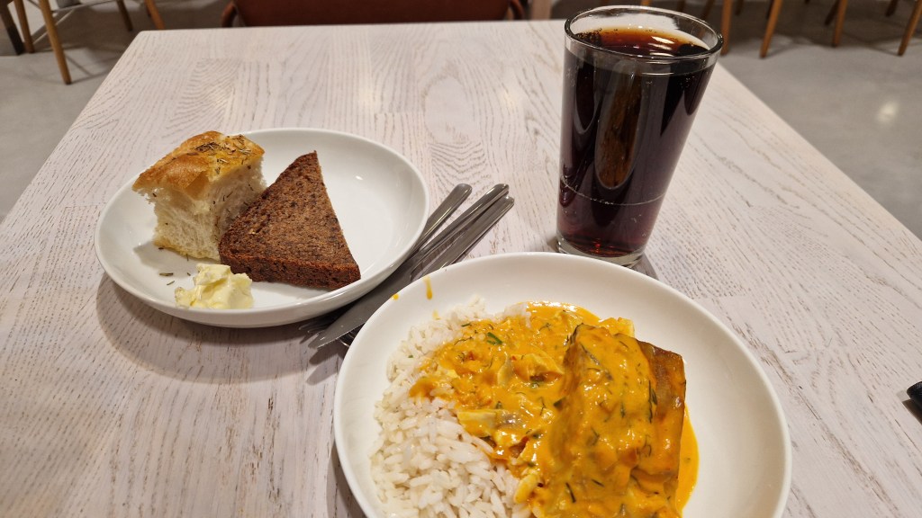 I also decided to check out the limited but decent food choice available within the lounge and sticking with the Finnish fish theme, decided to have some Coconut Fish Curry with rice. I was also able to tick off another of the four traditional foods we’d been told about on the walking tour that morning, this one being Ruisleipä, or rye bread for those that don’t speak Finnish. Spending a few hours in the lounge relaxing, refreshing and writing, I decided to head towards the gates about 90 minutes before my flight to enjoy the one thing the lounge was lacking, a view out of a window.