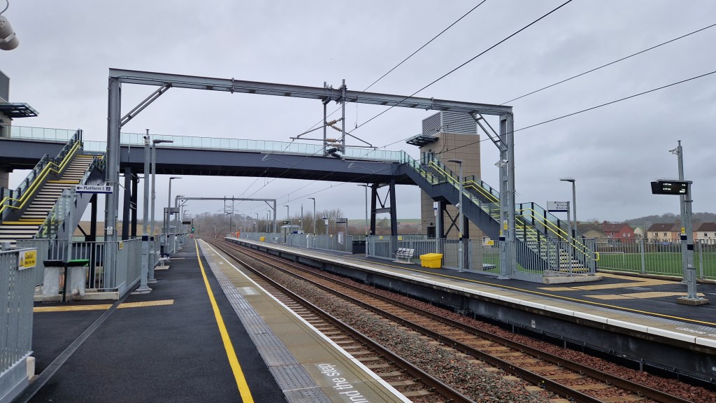 Back in February 2024, on the same day I visited Wallyford and Musselburgh for episode 15 of Exploring the East Coast (read that here), I also headed to what was then Scotland’s newest station, East Linton. Located between Drem and Dunbar, East Linton is a fairly basic station with two platforms, a somewhat interesting overbridge, lifts and access to the street from both platforms. There’s a car park, bike rack and bus stop provided (although currently no bus service) and by heading through the park on the southbound side of the station, you can reach the town’s high street in just a few minutes’ walk.
