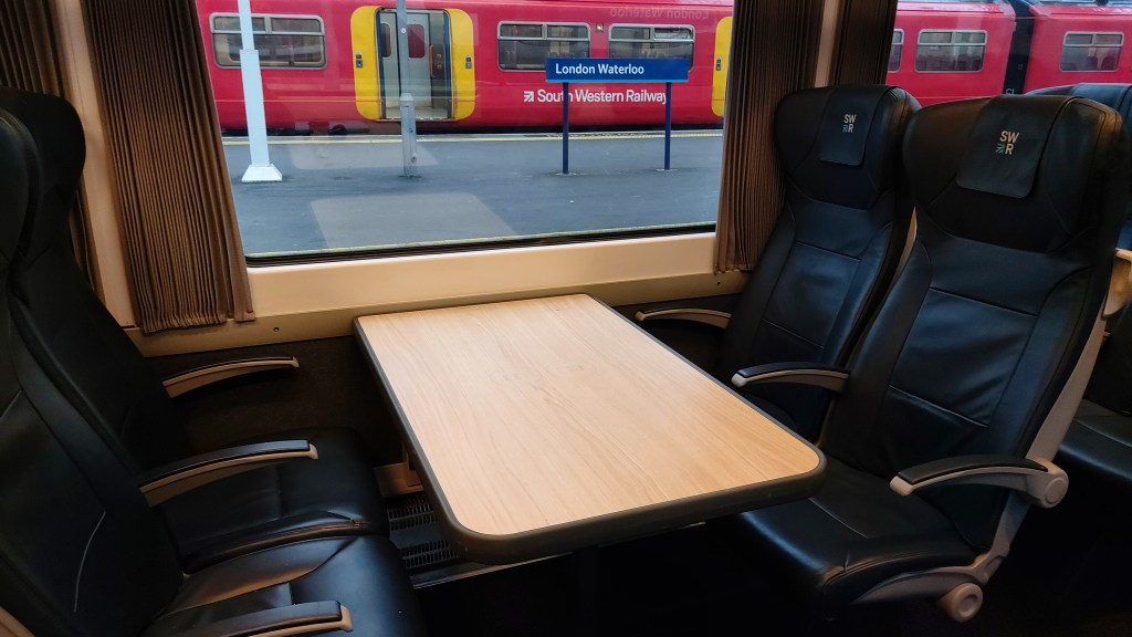 With a journey time of just under three hours I had decided to pay a bit extra and get a first-class ticket for the journey, hoping for some extra comfort and a bit of peace and quiet for the trip to the coast. Unfortunately, SWR doesn’t have any first-class lounges and so my wait for the train was on the main concourse at Waterloo, although fortunately I didn’t have too long to wait with the platform being announced around 15 minutes prior to departure. Heading to platform 7, I headed towards the front of a train and, after a slightly embarrassing moment where I walked straight passed where I was aiming for, was soon settling into a seat for the journey to Weymouth.