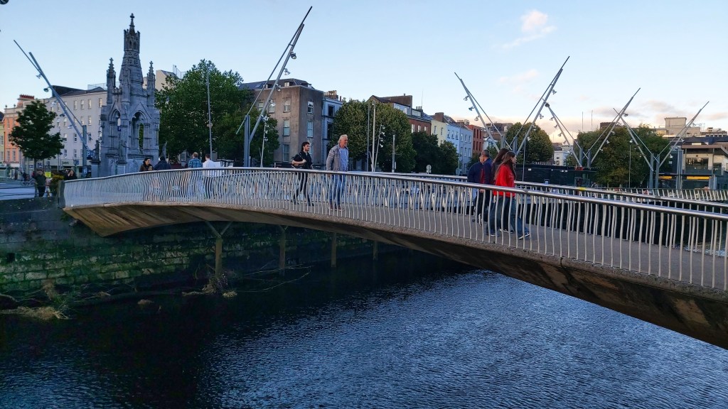 Connecting the open space by the National Memorial with Sullivan’s Quay on the other side of the river is the Nano Nagel Bridge, named after Honora Nano Nagle, the founder of the ‘Sisters of the Presentation of the Blessed Virgin Mary’, in Ireland. In trying to research the bridge, I can’t find a date for when it was constructed although it was one of the structures built to commemorate Cork’s 800th anniversary of being a city. Given that anniversary was in 1985, I’d suspect the bridge was built around then. From Nano Nagel bridge, Sain Finn Barrie’s Cathedral is visible in the distance on a hill on the south side the River, although at this point I decided to head back into the city centre and to my accommodation rather than climb the slope.