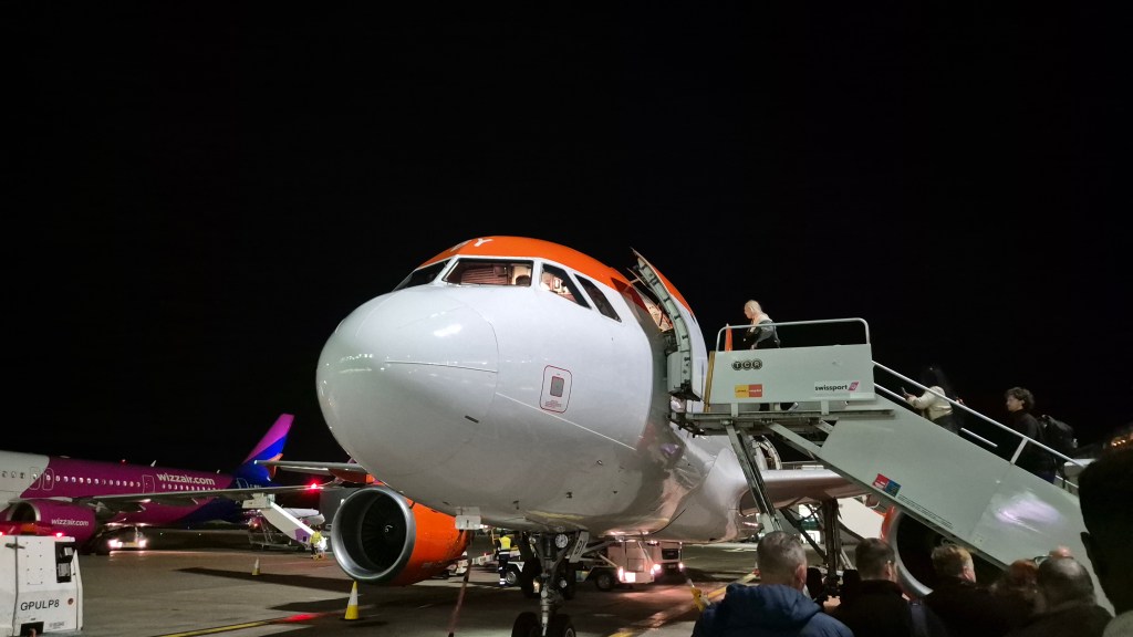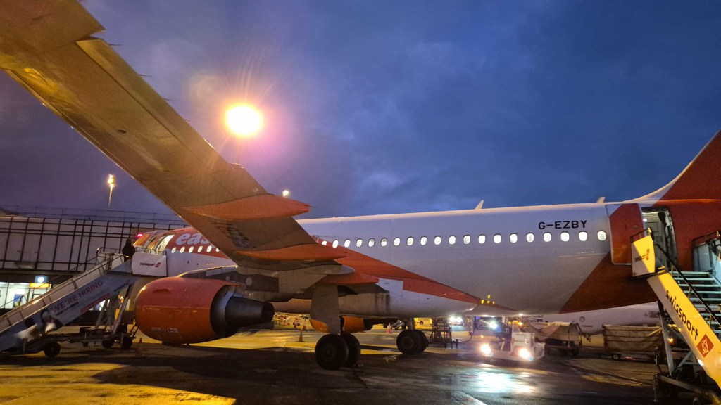 With the flight scheduled to depart at 0700, we were at Luton just after 0500 and, having paid for fast-track security, made it through to the main departure lounge about 5 minutes after walking through the front door of the terminal. We were able to find a seat at the Hawker Bar and Terrace and spent the hour or so until our gate was announced enjoying a nice breakfast and getting a caffeine fix. Despite the easyJet app suggesting there was going to be a delay to our flight, the gate was announced a few minutes ahead of schedule at 0610. Heading to gate 22, we discovered that this gate was seemingly in the bowels of Luton airport, although thankfully only a few minutes’ walk from the departure lounge.