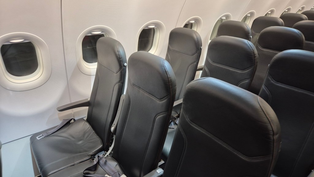 As our flight was one of the early morning ‘first wave’ of flights departing Luton, our aircraft was already at the gate waiting, with G-EZBY doing the honours. This 17.5 year old Airbus A319 was delivered to easyJet in July 2007 and has operated with them for its entire life, with a just a short period re-registered as OE-LQH and operating for easyJet Europe. Boarding started pretty soon after we got to the gate and it was so uneventful I didn’t write any notes down about it. We were in seats 24A & 24B for the short hop across the Irish Sea, although once boarding was complete, Beth moved to 26A so she could have a window seat and a row to herself.