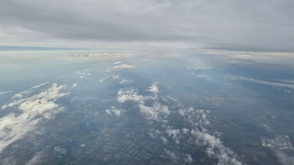 As boarding came to an end, the captain made their pre-flight announcement giving us, amongst other things, an estimated flight time of an hour and five minutes. The aircraft door closed at 0749 and at 0756 we were pushed back off stand to begin our taxi to the runway. After a short wait for other departing aircraft, we took off from Stansted’s runway 22 at 0808 and climbed pretty much straight into a bank of cloud. For some reason I always think of Europe as being just to the south of the UK and, whilst a large part of it is, a huge amount of it actually requires you to head east or north-east from Stansted, with my flight to Bremen taking a couple of large left turns after departure to head north-east towards the coast.