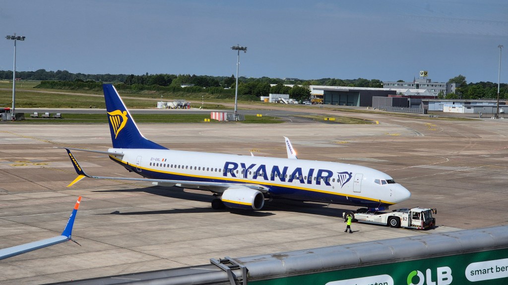 Crossing the Suffolk coast to the north-east of Ipswich, our flight path took us across the southern North Sea and to the Dutch coast near the North Holland town of Alkmaar. Continuing across The Netherlands including the Markermeer, one of the lakes formed during the Dutch land reclamation. From here, it wasn’t far to the German border and, with Bremen having an east-west runway, our approach was pretty much straight in to land on runway 09 at 1000 local time, just 52 minutes after departing Stansted. We did get to experience on of Ryanair’s famous decelerations as the pilots slammed on the brakes to be able to take an earlier exit from the runway and we arrived on stand just two minutes after landing.