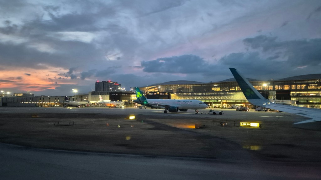 Having had a great weekend exploring in and around Cork (read about that here and here), it was time to head home. Unlike my last trip to Cork where I took a circuitous route home via Dublin with Iarnród Éireann and Aer Lingus Regional (read those posts here and here), this time we’d be taking a more direct route with Aer Lingus from Cork to London Heathrow. This flight would be the other ‘half’ of the roundtrip that we flew to Cork on, with the early evening departure from Cork forming the late evening return flight from England.