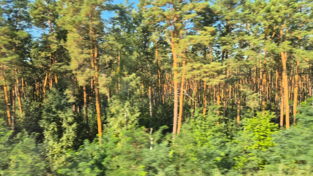 After departing Dresden Neustadt, we seemed to crawl along between Weinböhla and Niederau in the north Dresden suburbs, eventually coming to a stand for a few minutes at the latter. We then took what felt like a very winding route on a single line, passing under a couple of double track mainlines enroute, before rejoining what appeared to be a mainline just to the north of Großenhain Cottbuser where we finally got some speed up. At our next stop of Elsterwerda the train got very busy and I was glad to have reserved seats on this occasion, and clearly the slow running was allowed for in the timetable as we arrived here on time. Between Elsterwerda and our next stop at Doberlug, we passed through the beautiful green forests of the Naturpark Niederlausitzer Heidelandschaft (Lower Lusatian Heath Nature Park) which added something interesting to the otherwise mostly flat farming landscape.