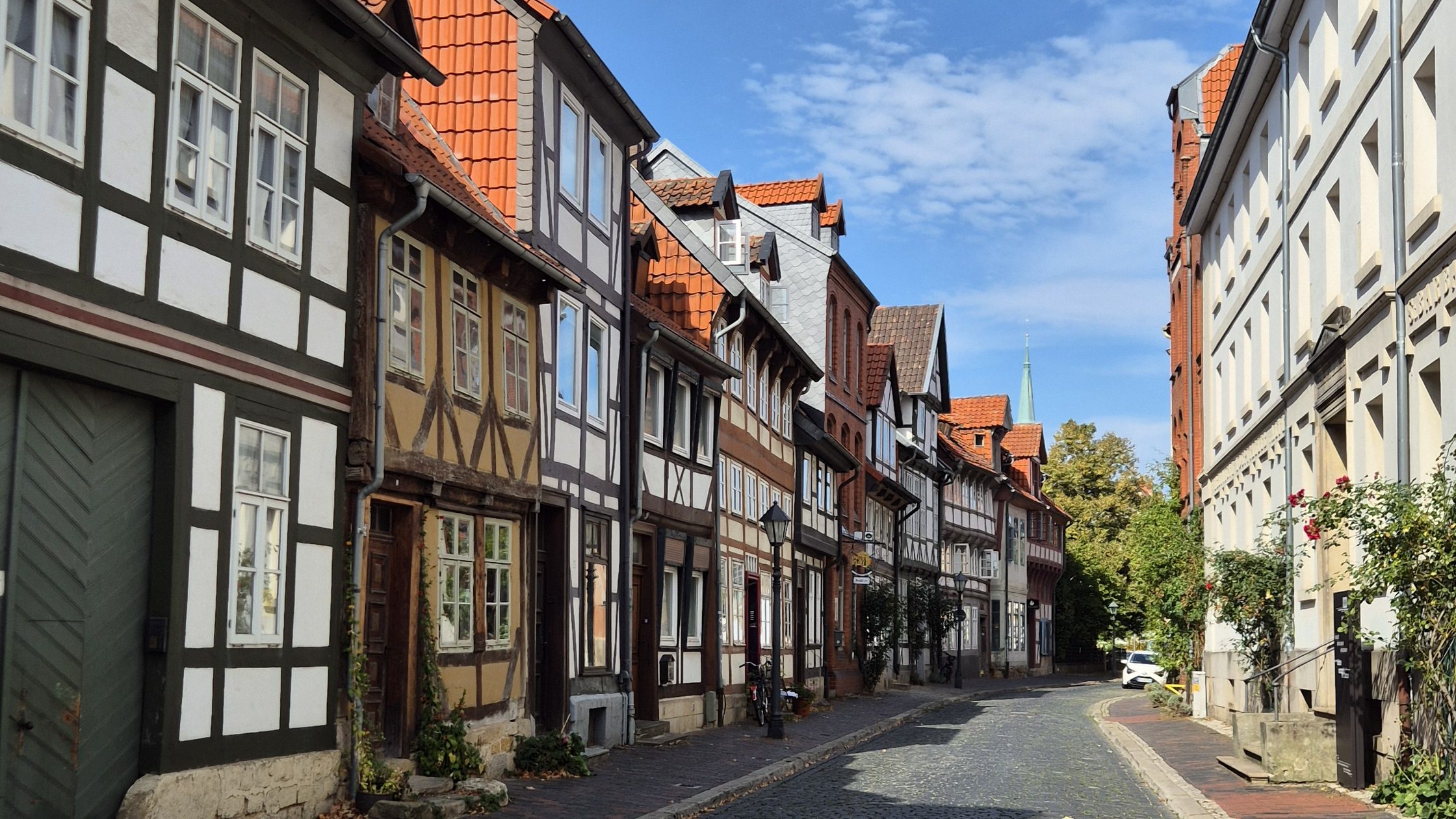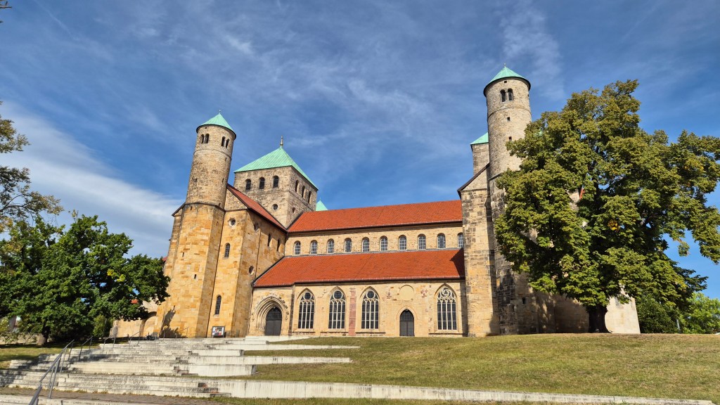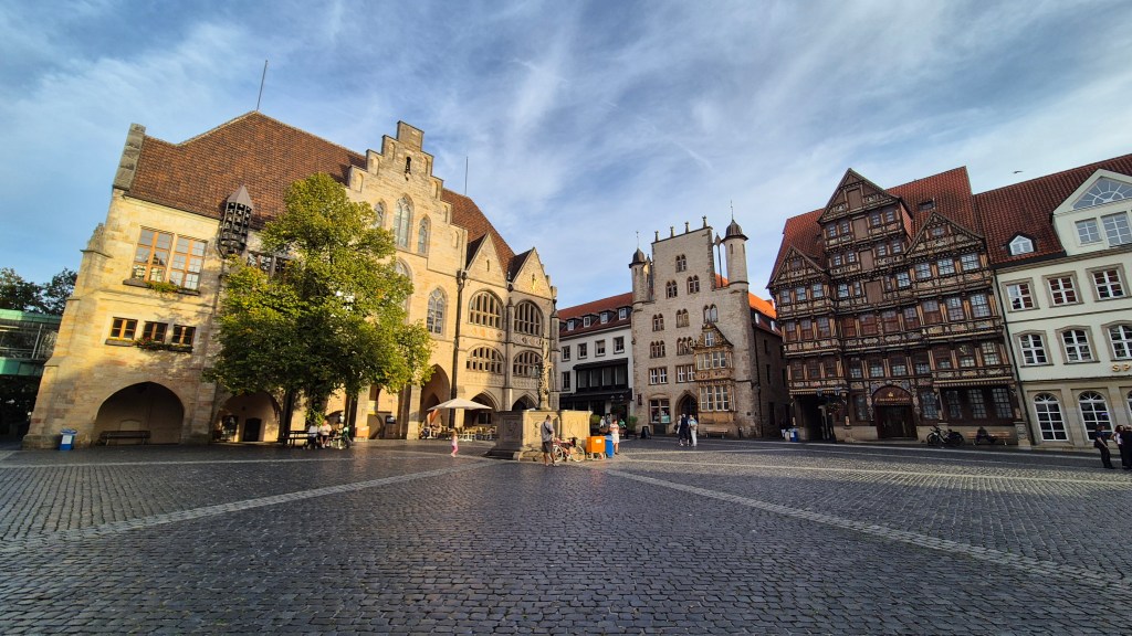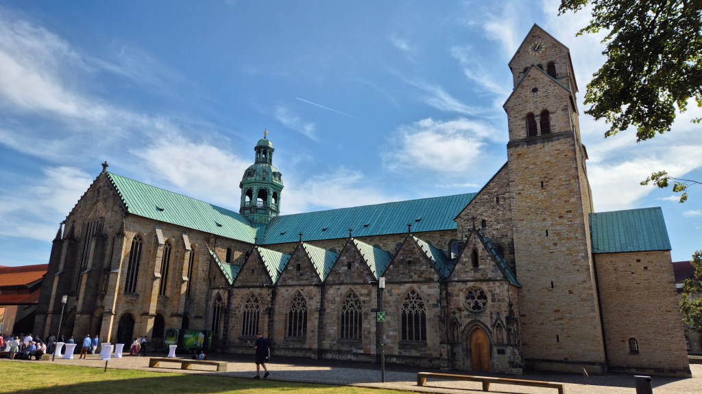 Having explored the churches that form the UNESCO Worl Heritage site, we decided to wander around the city some more, heading down the narrow, walled alley Stinekenpforte (named after the Stineken Gate the cathedral complex that used stand on the site) and along Hinterer Brühl, a historic street of 16th century half-timbered houses that somehow survived the Allied air raids towards the end of the Second World War. We also passed St. Godehard’s church which, whilst not part of the UNESCO World Heritage site, is still an important church within Hildesheim and Germany as a key example of Romanesque architecture and also as its role as the temporary seat of the bishop of Hildesheim during the rebuilding and later restoration of St. Mary’s Cathedral.