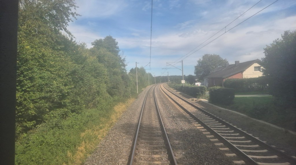Departing ontime at 1156, we had an uneventful journey to the first stop at Bünde (Westf), however by the time we had reached the second stop at Osnabrücke we were running 11 minutes late. After departing Osnabrücke I went for a bit of a wander to the back of the train to stretch my legs and watch the view of the track rolling away behind us, an advantage of loco hauled carriages over modern units. I also took the opportunity to check out the loos which were quite large in comparison to some train toilets. Our third stop at Rheine came around half an hour after Osnabrücke and one of our two seat mates left the train here giving us a bit more space. Rheine also had a large freight yard next to the station, with plenty of wagons stabled awaiting their next workings across Europe.