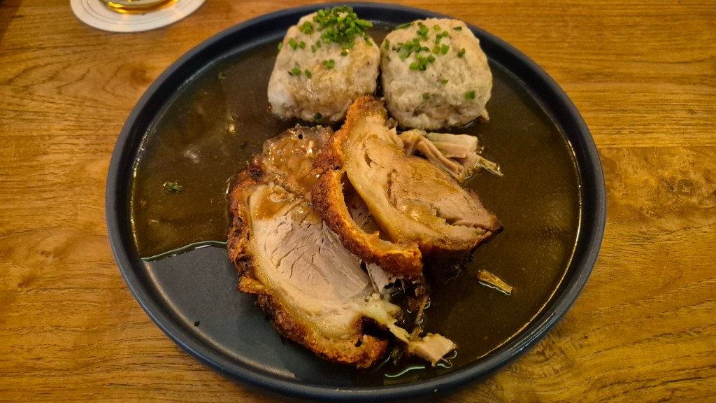 Our final day in Munich started with us heading into Marienplatz for the final time and grabbing some breakfast at the Rischart Café am Marienplatz. Rischart is a chain of bakeries, so it gives the same vibes as visiting a Bird’s café for those from the English Midlands will know what I’m talking about with that reference. I once again went for the traditional Weißwurst and embarrassed myself a lot less than the previous day, whilst Beth opted for what looked like a very tasty smoked salmon and scrambled eggs. Whilst not quite as fancy as the Glockenspiel café the previous day, the food was just as tasty, and it was a bit more budget conscious.